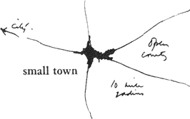 Therefore: Preserve country towns where they exist; and encourage the growth of new self-contained towns, with populations between 500 and 10,000, entirely surrounded by open countryside and at least 10 miles from neighboring towns. Make it the region's collective concern to give each town the wherewithal it needs to build a base of local industry, so that these towns are not dormitories for people who work in other places, but real towns - able to sustain the whole of life.