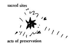 People cannot maintain their spiritual roots and their connections to the past if the physical world they live in does not also sustain these roots. Informal experiments in our communities have led us to believe that people agree, to an astonishing extent, about the sites which do embody people's relation to the land and to the past. It seems, in other words, as though "the" sacred sites for an area exist as objective communal realities. If this is so, it is then of course essential that these specific sites be preserved and made important. Destruction of sites which have become part of the communal consciousness, in an agreed and widespread sense, must inevitably create gaping wounds in the communal body. Traditional societies have always recognized the importance of these sites. Mountains are marked as places of special pilgrimage; rivers and bridges become holy; a building or a tree, or rock or stone, takes on the power through which people can connect themselves to their own past. But modern society often ignores the psychological importance of these sites. They are bulldozed, developed, changed, for political and economic reasons, without regard for these simple but fundamental emotional matters; or they are simply ignored. We suggest the following two steps. 1. In any geographic area large or small ask a large number of people which sites and which places make them feel the most contact with the area; which sites stand most for the important values of the past, and which ones embody their connection to the land. Then insist that these sites be actively preserved. 2. Once the sites are chosen and preserved, embellish them in a way which intensifies their public meaning. We believe that the best way to intensify a site is through a progression of areas which people pass through as they approach the site. This is the principle of "nested precincts," discussed in detail under the pattern Holy Ground (66). A garden which can be reached only by passing through a series of outer gardens keeps its secrecy. A temple which can be reached only by passing through a sequence of approach courts is able to be a special thing in a man's heart. The magnificence of a mountain peak is increased by the difficulty of reaching the upper valleys from which it can be seen; the beauty of a woman is intensified by the slowness of her unveiling; the great beauty of a river bank its rushes, water rats, small fish, wild flowers - are violated by a too direct approach; even the ecology cannot stand up to the too direct approach - the thing will simply be devoured. We must therefore build around a sacred site a series of spaces which gradually intensify and converge on the site. The site itself becomes a kind of inner sanctum, at the core. And if the site is very large - a mountain - the same approach can be taken with special places from which it can be seen - an inner sanctum, reached past many levels, which is not the mountain, but a garden, say, from which the mountain can be seen in special beauty. Therefore: Whether the sacred sites are large or small, whether they are at the center of the towns, in neighborhoods, or in the deepest countryside, establish ordinances which will protect them absolutely so that our roots in the visible surroundings cannot be violated.