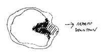 4. Even though the center lies on one side of the community, forming a boundary of the community, we may also assume that the center does need to bulge into the community just a little. This follows from the fact that, even though services do need to be in the boundary of the community, not in its middle, still, people do have some need for the psychological center of their community to be at least somewhere toward the geometric center of gravity. If we make the boundary bulge toward the geometric center, then this axis will naturally form a center and, further, its catch basin, according to the data given above, will correspond almost perfectly with the community.