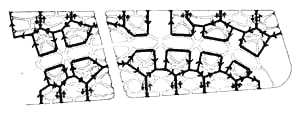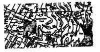 Nobody wants fast through traffic going by their homes. Through traffic is fast, noisy, and dangerous. At the same time cars are important, and cannot be excluded altogether from the areas where people live. Local roads must provide access to houses but prevent traffic from coming through. This problem can only be solved if all roads which have houses on them are laid out to be "loops." We define a looped road as any road in a road network so placed that no path along other roads in the road network can be shortened by travel along the "loop.'' The loops themselves must be designed to discourage high volumes or high speeds: this depends on the total number of houses served by the loop, the road surface, the road width, and the number of curves and corners. Our observations suggest that a loop can be made safe so long as it serves less than 50 cars. At one and one-half cars per house, such a loop serves 30 houses; at one car per house, 50 houses; at one-half car per house, 100 houses. Here is an example of an entire system of looped local roads designed for a community of 1500 houses in Peru. Looped local roads in Lima.