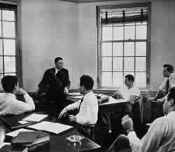 The fundamental learning situation is one in which a person learns by helping someone who really knows what he is doing. It is the simplest way of acquiring knowledge, and it is powerfully effective. By comparison, learning from lectures and books is dry as dust. But this situation has all but disappeared from modern society. The schools and universities have taken over and abstracted many ways of learning which in earlier times were always closely related to the real work of professionals, tradesmen, artisans, independent scholars. In the twelfth century, for instance, young people learned by working beside masters - helping them, making contact directly with every corner of society. When a young person found himself able to contribute to a field of knowledge, or a trade - he would prepare a master "piece"; and with the consent of the masters, become a fellow in the guild. An experiment by Alexander and Goldberg has shown that a class in which one person teaches a small group of others is most likely to be successful in those cases where the "students" are actually helping the "teacher" to do something or solve some problem, which he is working on anyway - not when a subject of abstract or general interest is being taught. (Report to the Muscatine Committee, on experimental course ED. 10X, Department of Architecture, University of California, 1966.) If this is generally true - in short, if students can learn best when they are acting as apprentices, and helping to do something interesting-it follows that our schools and universities and offices and industries must provide physical settings which make this master-apprentice relation possible and natural: physical settings where communal work is centered on the master's efforts and where half a dozen apprentices - not more - have workspace closely connected to the communal work of the studio. We know of an example of this pattern, in the Molecular Biology building of the University of Oregon. The floors of the building are made up of laboratories, each one under the direction of a professor of biology, each with two or three small rooms opening directly off the lab for graduate students working under the professor's direction.