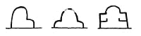 2. Width An indoor street needs to be wide enough for people to feel comfortable walking or stopping along the way. Informal experiments help to determine how much space people need when they pass others. Since the likelihood of three people passing three people is not high, we consider as a maximum two people passing two people, or three people passing one person. Each person takes about two feet; there needs to be about one foot between two groups which pass, so that they do not feel crowded; and people usually walk at least one foot away from the wall. The street width, therefore, should be at least 11 feet. Our experiments also indicate that a person seated or standing at the edge of a street feels uncomfortable if anyone passes closer than five feet. Thus, in places in the street where seats, activities, entrances, and counters are placed, the street should widen to about 16 feet (one-sided) or 20 feet (two-sided). 3. Height Ceiling heights should also feel comfortable for people walking or standing along an indoor street. According to Ceiling Height Variety (190), the height of any space should be equal to the appropriate horizontal social distances between people for the given situation - the higher the ceiling, the more distant people seem from each other. Edward Hall, in The Hidden Dimension, suggests that a comfortable distance between strangers is the distance at which you cannot distinguish the details of their facial features. He gives this distance as being between 12 and 16 feet. Thus, the ceiling height in an indoor street should be at least in that range. Where people sit and stand talking to each other, the appropriate social distance is more intimate. Hall gives it a dimension of four to seven feet. Thus, the ceiling in activity and "edge" places should be seven feet. This suggests, for a large indoor street, a ceiling that is high in the middle and low at the edges. In the middle, where people are passing through and are more anonymous, the ceiling may be 12 to 20 feet high, or even higher, according to the scale of the passage. Along the edges of the thoroughfare, where people are invited to stop and become slightly more engaged in the life of the building, the ceilings may be lower. Here are three sections through an indoor street which have this property.