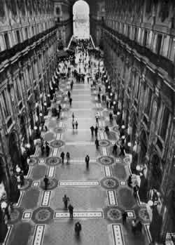 1. Cold weather. In very cold climates to have all circulation outdoors inhibits social communication instead of helping it. Of course, a street can be roofed, particularly with a glass roof. But as soon as it becomes enclosed, it has a different social ecology and begins to function differently. 2. High density. When a building complex is so tightly packed on the site that there is no reasonable space for outdoor streets because the entire building complex is a continuous two, three, or four story building, it becomes necessary to think of major thoroughfares in different terms. To solve the problems posed by these conditions, streets must be replaced by indoor thoroughfares or corridors. But the moment we put them indoors and under cover, they begin to suffer from entirely new problems, which are caused by the fact that they get sterilized by their isolation. First, they become removed from the public realm, and are often deserted. People hardly ever feel free to linger in public corridors when they are off the street. And second, the corridors become so unfriendly that nothing ever happens there. They are designed for scuttling people through, but not for staying in. In order to solve these new problems, created when we try to put a street indoors, the indoor streets - or building thoroughfares - need five specific characteristics. 1. Shortcut Public places are meant to invite free loitering. The public places in community buildings (city halls, community centers, public libraries) especially need this quality, because when people feel free to hang around they will necessarily get acquainted with what goes on in the building and may begin to use it. But people rarely feel free to stay in these places without an Official Reason. Goffman describes this situation as follows: Being present in a public place without an orientation to apparent goals outside the situation is sometimes called lolling, when position is fixed, and loitering, when some movement is entailed. Either can be deemed sufficiently improper to merit legal action. On many of our city streets, especially at certain hours, the police will question anyone who appears to be doing nothing and ask him to "move along." (In London, a recent court ruling established that an individual has a right to walk on the street but no legal right merely to stand on it.) In Chicago, an individual in the uniform of a hobo can loll on "the stem," but once off this preserve he is required to look as if he were intent on getting to some business destination. Similarly, some mental patients owe their commitment to the fact that the police found them wandering on the streets at off hours without any apparent destination or purpose in mind. (Erving Goffman, Behavior in Public Places,New York: Free Press, 1963, p. 56.) If a public space is to be really useful it must somehow help to counter the anti-loitering tendency in modern society. Specifically, we have observed these problems: 1. A person will not use a public place if he has to make a special motion toward it, a motion which indicates the intention to use the facility "officially." 2. If people are asked to state their reason for being in a place (for example, by a receptionist or clerk) they won't use it freely. 3. Entering a public space through doors, corridors, changes of level, and so on, tends to keep away people who are not entering with a specific goal in mind. Places which overcome these problems, like the Galleria in Milan, all have a common characteristic: they all have public thoroughfares which slice through them, lined with places to stop and loiter and watch the scene.