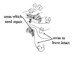 . . . the most general aspects of a building complex are established in Building Complex (95), Number of Stories (96), and Circulation Realms (98). The patterns which follow, and all remaining patterns in the language, concern the design of one single building and its surroundings. This pattern explains the very first action you must take - the process of repairing the site. Since it tends to identify very particular small areas of any site as promising areas of development, it is greatly supported by Building Complex (95) which breaks buildings into smaller parts, and therefore makes it possible to tuck them into different corners of the site in the best places.