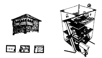 | 109 Long Thin House* . . . for a very small house or office the pattern of Wings of Light (106) is almost automatically solved - no one would imagine that the house should be more than 25 feet wide. But in such a house or office there are strong reasons to make the building even longer and thinner still. This pattern was originally formulated by Christie Coffin.