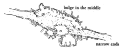 . . . paths of various kinds have been defined by larger patterns - Promenade (31), Shopping Street (32), Network of Paths and Cars (52), Raised Walk (55), Pedestrian Street (100), and Paths and Goals (120). This pattern defines their shape: and it can also help to generate these larger patterns piecemeal, through the very process of shaping parts of the path.