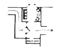 Formal version of the front of the gradient. Therefore: Lay out the spaces of a building so that they create a sequence which begins with the entrance and the most public parts of the building, then leads into the slightly more private areas, and finally to the most private domains. At the same time that common areas are to the front, make sure that they are also at the heart and soul of the activity, and that all paths between more private rooms pass tangent to the common ones - Common Areas at the Heart (129). In private houses make the Entrance Room (130) the most formal and public place and arrange the most private areas so that each person has a room of his own, where he can retire to be alone - A Room of One's Own (141). Place bathing rooms and toilets half-way between the common areas and the private ones, so that people can reach them comfortably from both - Bathing Room (144); and place sitting areas at all the different degrees of intimacy, and shape them according to their position in the gradient - Sequence of Sitting Spaces (142). In offices put Reception Welcomes You (149 ) at the front of the gradient and Half-Private Office (152) at the back. . . .