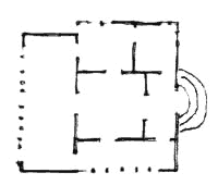 The movement between rooms is as important as the rooms themselves; and its arrangement has as much effect on social interaction in the rooms, as the interiors of the rooms. The movement between rooms, the circulation space, may be generous or mean. In a building where the movement is mean, the passages are dark and narrow - rooms open off them as dead ends; you spend your time entering the building, or moving between rooms, like a crab scuttling in the dark. Compare this with a building where the movement is generous. The passages are broad, sunlit, with seats in them, views into gardens, and they are more or less continuous with the rooms themselves, so that the smell of wood smoke and cigars, the sound of glasses, whispers, laughter, all that which enlivens a room, also enlivens the places where you move. These two approaches to movement have entirely different psychological effects. In a complex social fabric, human relations are inevitably subtle. It is essential that each person feels free to make connections or not, to move or not, to talk or not, to change the situation or not, according to his judgment. If the physical environment inhibits him and reduces his freedom of action, it will prevent him from doing the best he can to keep healing and improving the social situations he is in as he sees fit. The building with generous circulation allows each person's instincts and intuitions full play. The building with ungenerous circulation inhibits them. It not only separates rooms from one another to such an extent that it is an ordeal to move from room to room, but kills the joy of time spent between rooms and may discourage movement altogether. The following incident shows how important freedom of movement is to the life of a building. An industrial company in Lausanne had the following experience. They installed TV-phone intercoms between all offices to improve communication. A few months later, the firm was going down the drain - and they called in a management consultant. He finally traced their problems back to the TV-phones. People were calling each other on the TV-phone to ask specific questions - but as a result, people never talked in the halls and passages any more - no more "Hey, how are you, say, by the way, what do you think of this idea. . ." The organization was falling apart, because the informal talk - the glue which held the organization together - had been destroyed. The consultant advised them to junk the TV-phones - and they lived happily ever after. This incident happened in a large organization. But the principle is just the same in a small work group or a family. The possibility of small momentary conversations, gestures, kindnesses, explanations which clear up misunderstandings, jokes and stories is the lifeblood of a human group. If it gets prevented, the group will fall apart as people's individual relationships go gradually downhill. It is almost certain that the building with ungenerous circulation makes it harder for people to maintain their social fabric. In the long run, there is a good chance that social order in the building with ungenerous circulation will break down altogether. The generosity of movement depends on the overall arrangement of the movement in the building, not on the detailed design of individual passages. In fact, it is at its most generous, when there are no passages at all and movement is created by a string of interconnecting rooms with doors between them. A sequence of rooms without a passage.