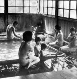 "The motions we call bathing are mere ablutions which formerly preceded the bath. The place where they are performed, though adequate for the routine, does not deserve to be called a bathroom." -Bernard Rudofsky Rudofsky points out that cleaning up is only a small part of bathing; that bathing as a whole is a far more basic activity, with therapeutic and pleasurable aspects. In bathing we tend to ourselves, our bodies. It is one of the precious times when we are awake and absolutely naked. The relaxation of the bath puts us into sensual contact with water. It is one of the most direct and simple ways of unwinding. And, most astonishing, there is even evidence that we become less warlike when we tend to ourselves and our children in this way. Cross culturally there is a correlation between the degree to which a society places restrictions on bodily pleasure - particularly in childhood - and the degree to which the society engages in the glorification of warfare and sadistic practices. (Philip Slater, Pursuit of Loneliness,Boston: Beacon Press, 1970, pp. 89-90.) We ought to remember . . . that the thermae of old, with their routine of daily regeneration, were as much a matter of course to their users as our restaurants are to us. Only more so; they were considered indispensable. In the fourth century, the city of Rome alone counted 856 bathing establishments; six hundred years later, Cordoba boasted an even larger number of public baths - and who ever hears as much as its name? (Rudofsky, Behind the Picture Window,New York: Oxford University Press, 1955) p. 118.)