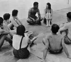 The larger meetings are, the less people get out of them. But institutions often put their money and attention into large meeting rooms and lecture halls. We first discuss the sheer size of meetings. It has been shown that the number of people in a group influences both the number who never talk, and the number who feel they have ideas which they have not been able to express. For example, Bernard Bass (Organizational Psychology,Boston: Allyn, 1965, p. 200) has conducted an experiment relating group size to participation. The results of this experiment are shown in the following graph.