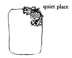 Somewhere in every garden, there must be at least one spot, a quiet garden seat, in which a person - or two people - can reach into themselves and be in touch with nothing else but nature. Throughout the patterns in this pattern language we have said, over and again, how very essential it is to give ourselves environments in which we can be in touch with the nature we have sprung from - see especially City Country Fingers (3) and Quiet Backs (59). But among all the various statements of this fact there is not one so far which puts this need right in our own houses, as close to us as fire and food. Wordsworth built his entire politics, as a poet, around the fact that tranquility in nature was a basic right to which everyone was entitled. He wanted to integrate the need for solitude-in-nature with city living. He imagined people literally stepping off busy streets and renewing themselves in private gardens - every day. And now many of us have come to learn that without such a place life in a city is impossible. There is so much activity, days are so easily filled with jobs, family, friends, things to do - that time alone is rare. And the more we live without the habit of stillness, the more we tie ourselves to this active life, the stranger and more disquieting the experience of stillness and solitude becomes: city people are notoriously busy-busy, and cannot be alone, without "input," for a moment. It is in this context that we propose the isolated garden scat: a place hidden in the garden where one or two people can sit alone, undisturbed, near growing things. It may be on a roof top, on the ground, perhaps even half-sunken in an embankment. There are literally hundreds of old books about gardens which testify to this pattern. One is Hildegarde Hawthorne's The Lure of the Garden, New York: The Century Co., 1911. We quote from a passage describing the special kind of small talk that is drawn out of people by quiet garden seats: Perhaps, of all the various forms of gossip overheard by the garden, the loveliest is that between a young and an old person who are friends. Real friendship between the generations is rare, but when it exists it is of the finest. That youth is fortunate who can pour his perplexities into the ear of an older man or woman, and who knows a comradeship and an understanding exceeding in beauty the facile friendships created by like interests and common pursuits; and fortunate too the girl who is able to impart the emotions and ideas aroused in her by her early meetings with the world and life to some one old in experience but comprehendingly young in heart. Both of them will remember those hours long after the garden gate has closed behind their friend forever; as long, indeed, as they remember anything that went to the making of the best in them. Therefore: Make a quiet place in the garden - a private enclosure with a comfortable seat, thick planting, sun. Pick the place for the seat carefully; pick the place that will give you the most intense kind of solitude.