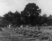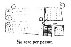 Therefore: Set aside one piece of land either in the private garden or on common land as a vegetable garden. About one-tenth of an acre is needed for each family of four. Make sure the vegetable garden is in a sunny place and central to all the households it serves. Fence it in and build a small storage shed for gardening tools beside it.