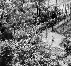 . . . we have one pattern, already, which brings out the useful character of gardens - both public and private ones - Fruit Trees (170); we supplement this with a smaller, but as important aspect of the garden - one which every public and private garden should contain: enhance common land - Common Land (67) and private gardens - HALF-HIDDEN GARDEN (111) with a patch where people can grow vegetables.