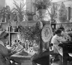 For the view, give each workspace a window to the outside - Windows Overlooking Life (192); surround the space with thick walls which contain shelves and storage space - Half-Open Wall (193), Thick Walls (197), Open Shelves (200), Waist-High Shelf (201); arrange a pool of incandescent light over the work table to set it off - Pools of Light (252); and try to make a sitting place, next to the workspace, so that the pulse of work, and talk can happen easily throughout the day - Sitting Circle (185). For details on the shape of the workspace, see The Shape of Indoor Space (191). . . .
