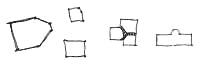 This means that the majority of spaces in a building must be polygons, in plan, with roughly straight walls and obtuse-angled corners. Most often they will probably be irregular, squashed, rough rectangles. Indeed, respect for the site and the subtleties of the plan will inevitably lead to slightly irregular shapes. And occasionally they may have curved walls - either if the wall is thick enough to be concave on both sides or, on an exterior wall, where there is no important social space outside.