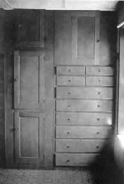 . . . given the layout of rooms, it is now necessary to decide exactly where to put the built-in cupboards and closets. Use them, especially, to help form the enclosure around a workspace - Workspace Enclosure (183), around a dressing space - Dressing Room (189), and around the doors of rather private rooms so that the doorway itself gets some depth - Corner Door (196).
