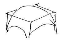3. Another is based on a rectangular grid of arched ribs. The edge ribs are entirely flat, and the center ribs have the greatest curvature. In the end, each part of the vault is curved in three dimensions, and the corners are slightly flattened.