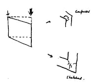 The strength of a structure depends on the strength of its connections; and these connections are most critical of all at corners, especially at the corners where the columns meet the beams. There are two entirely different ways of looking at a connection: 1. As a source of rigidity, which can be strengthened by triangulation, to prevent racking of the frame. This is a moment connection: a brace. See the upper picture. 2. As a source of continuity, which helps the forces to flow easily around the corner in the process of transferring loads by changing the direction of the force. This is a continuity connection: a capital. See the lower picture. 1. A column connection as a brace. As a building is erected, and throughout its life, it settles, creating tiny stresses within the structure. When the settling is uneven, as it most always is, the stresses are out of balance; there is strain in every part of the building, whether or not that part of the building was designed to accept strain and transmit the forces on down to the ground. The parts of the building that are not designed to carry these forces become the weak points of the building subject to fracture and rupture.