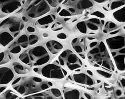 A column connection will work best when it acts both as a column capital and as a column brace. This means that it needs to be thick and solid, like a capital, so that there is a lot of material for the forces to travel through, and stiff and strong and completely continuous with the column and perimeter beam, like the brace, so that it can work against shear and bending. The bone structure, shown below uses both principles, to transfer compressive stress from one strut to another, continuously, throughout a three-dimensional space frame of struts. The structure is most massive at the connections, where the forces change direction.