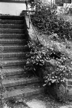 . . . outdoors there are various low walls at sitting height - Sitting Wall (243); terraced gardens, if the garden has a natural slope in it - Terraced Slope (169); and paths and steps and crinkled building edges - Paths and Goals (120), Stair Seats (125), Building Edge (160), Garden Wall (173)These are the best spots for flowers, and flowers help to make them beautiful. Flowers are beautiful along the edges of paths, buildings, outdoor rooms - but it is just in these places that they need the most protection from traffic. Without some protection they cannot easily survive.